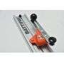 einfache, leichte und schnelle Lösung zum Schneiden von Fliesen bis zu einer Länge von 3200 mm (kann durch den Kauf separater Verlängerungen unbegrenzt verlängert werden), spezielle Profilschiene mit hochwiderstandsfähiger Struktur, robuster und komfortabler Schneidschlitten mit 3 kugelgelagerten Führungsrollen aus Nylon